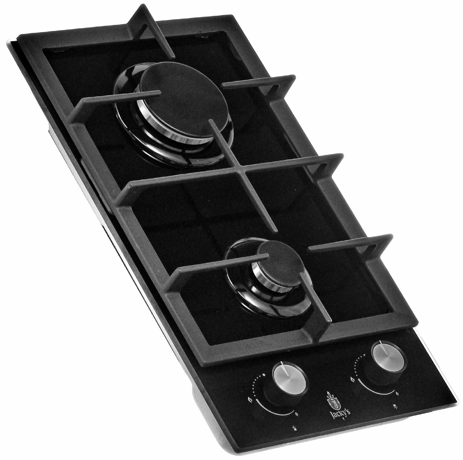 Газовая панель Jacky's JH GB331, 2 комфорки, черная, газ-контроль, автоподжиг, стекло