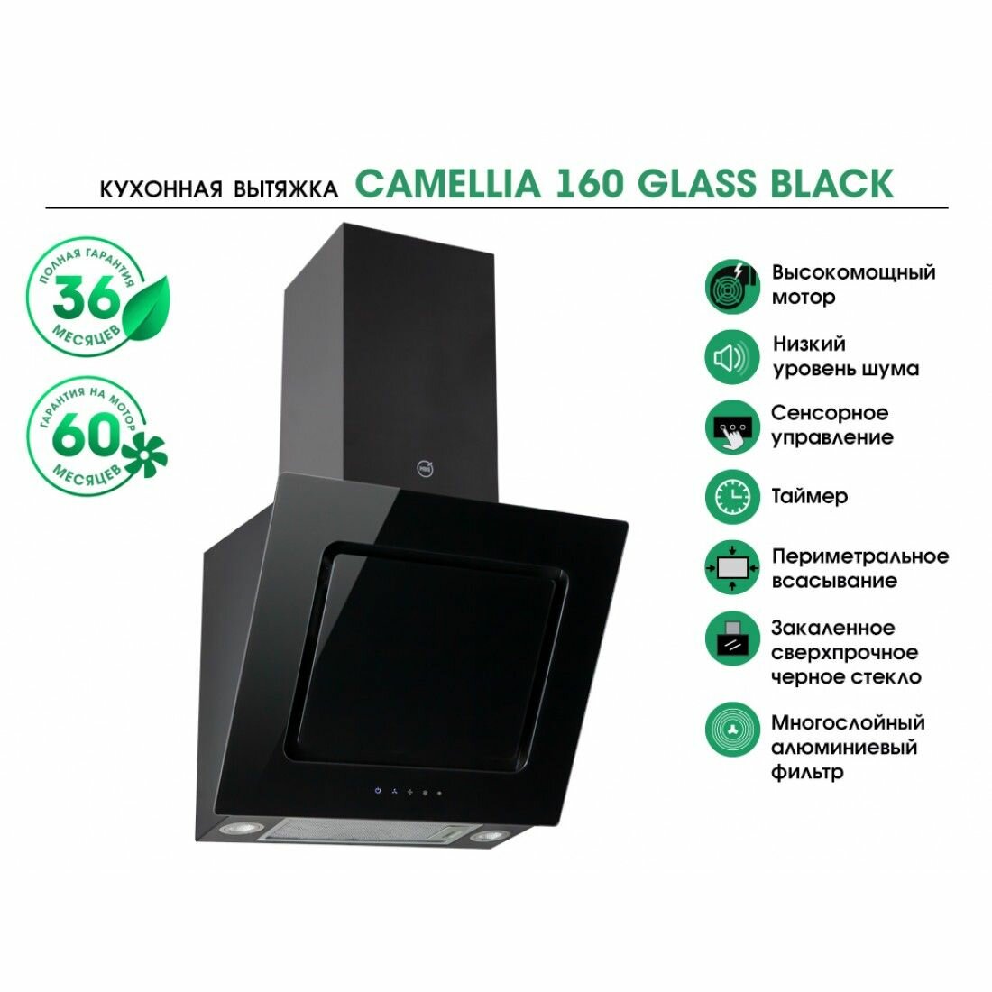 Кухонная вытяжка наклонная MBS CAMELLIA 160 GLASS BLACK интересное:
