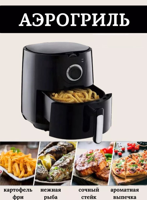 Аэрогриль электрический/Аэрофритюрница электрическая /объем 5 л /Мультипечь для кухни 1700 Вт/черный интересное: