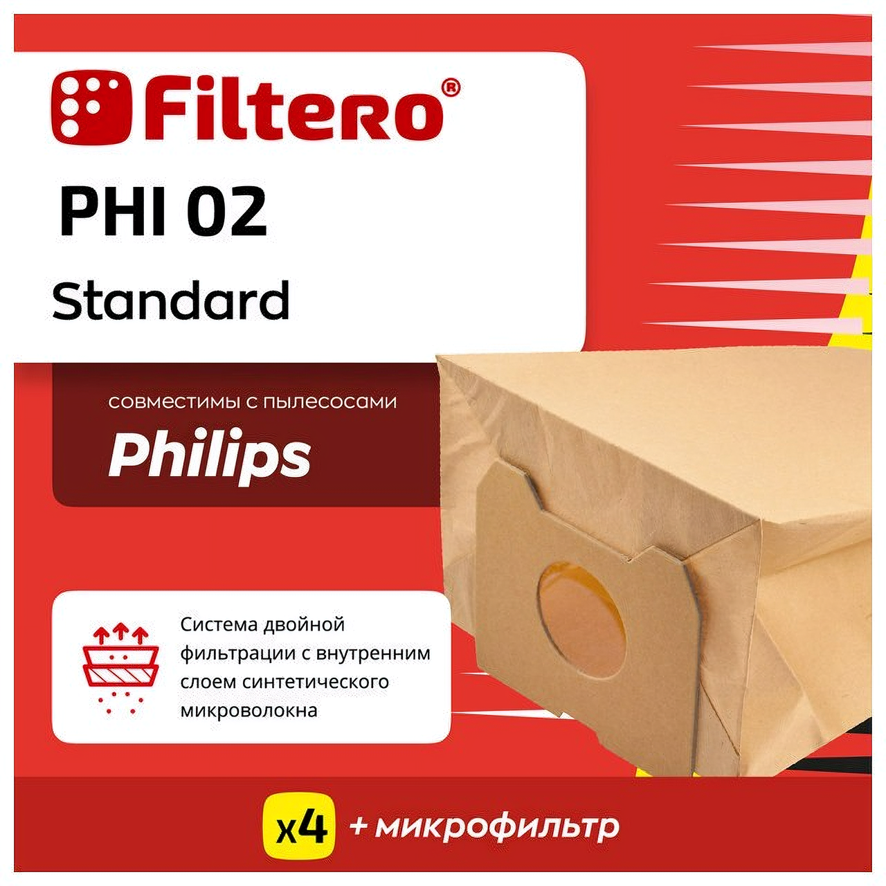 Пылесборники Filtero PHI 02 (4) Standard интересное: