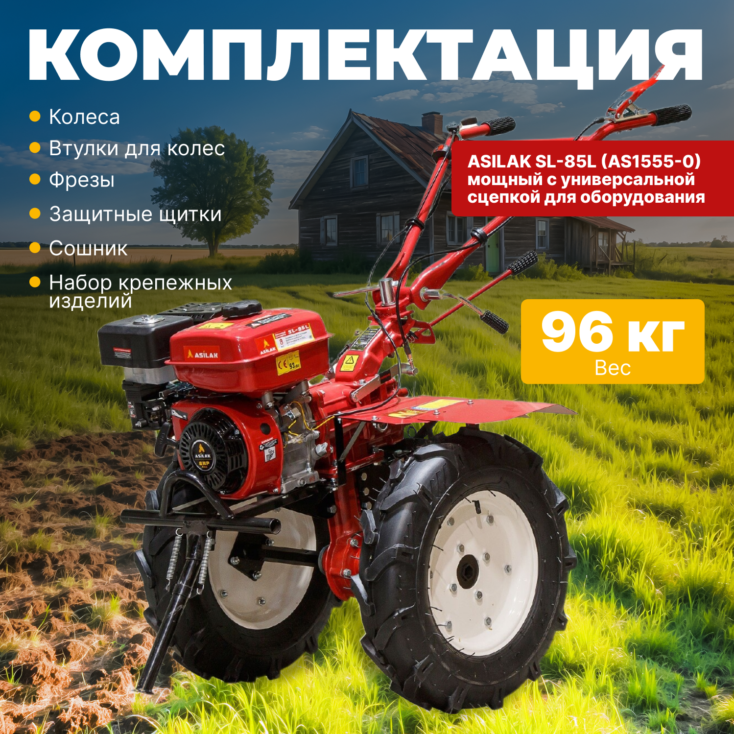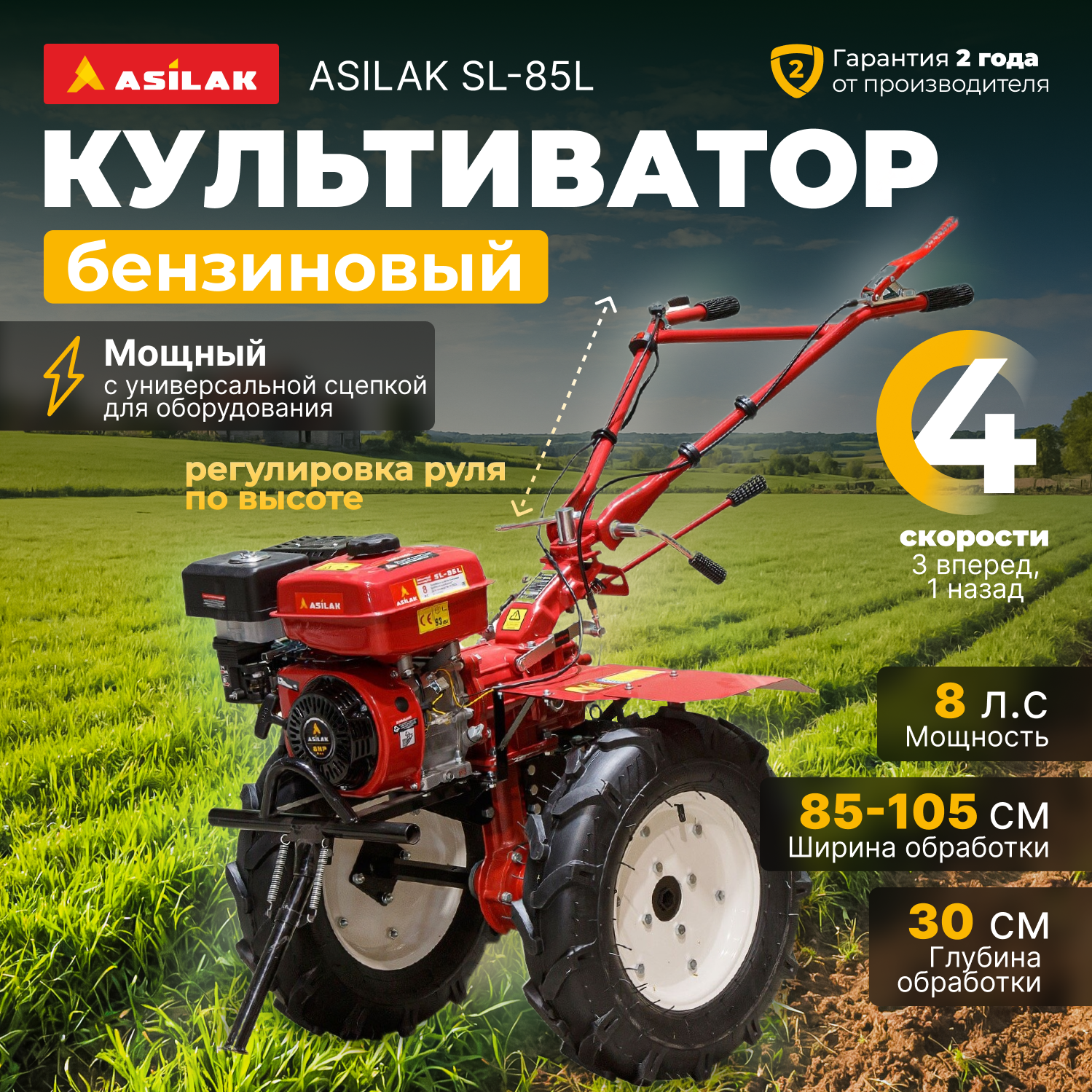 Культиватор бензиновый ASILAK SL-85L колёса 5.0-12 (8 л.с., шир. 105 см, без ВОМ, передач 3+1, пониженная передача, колеса 5.00-12) (AS1555-0) интересное: