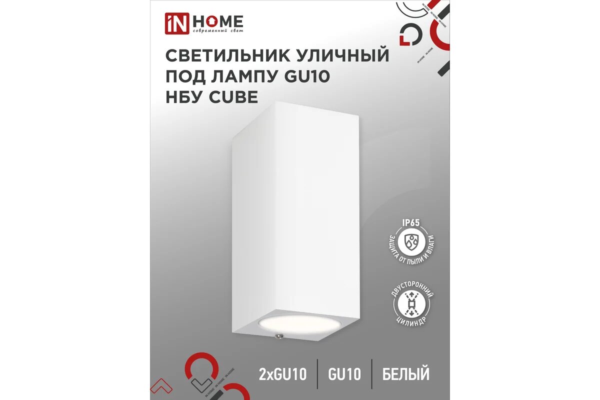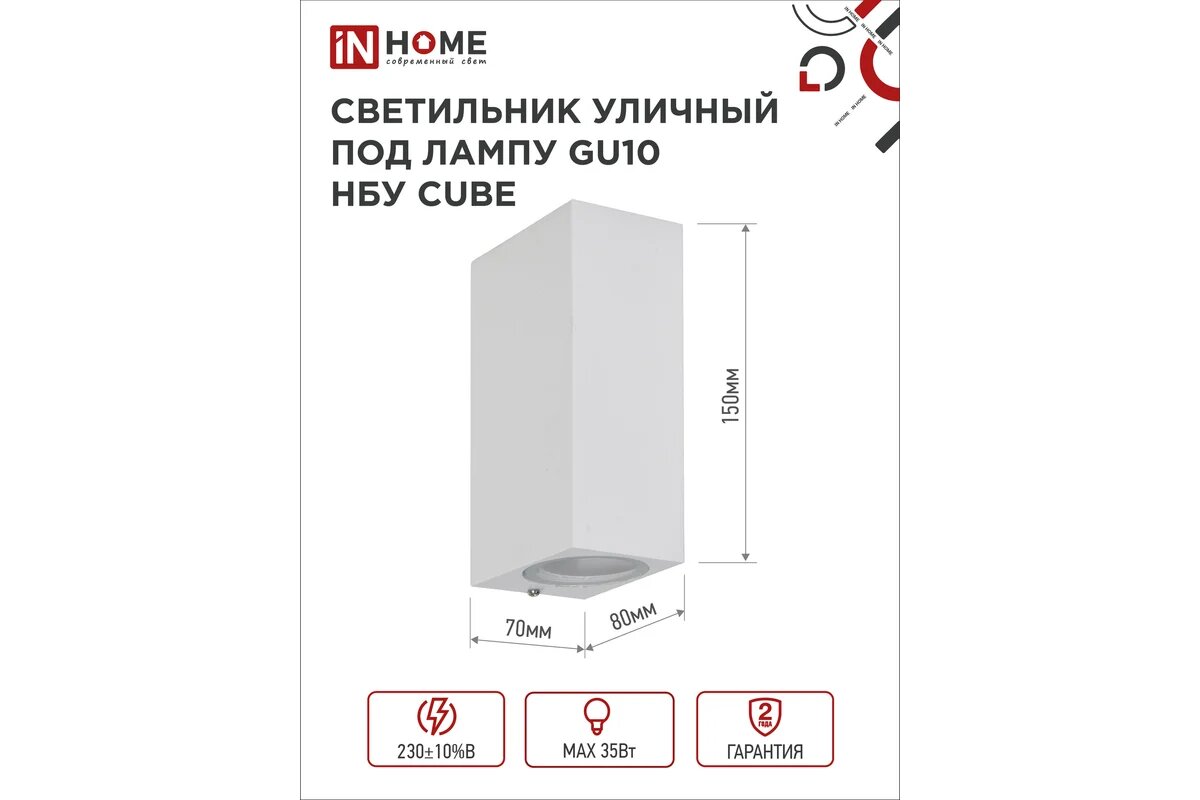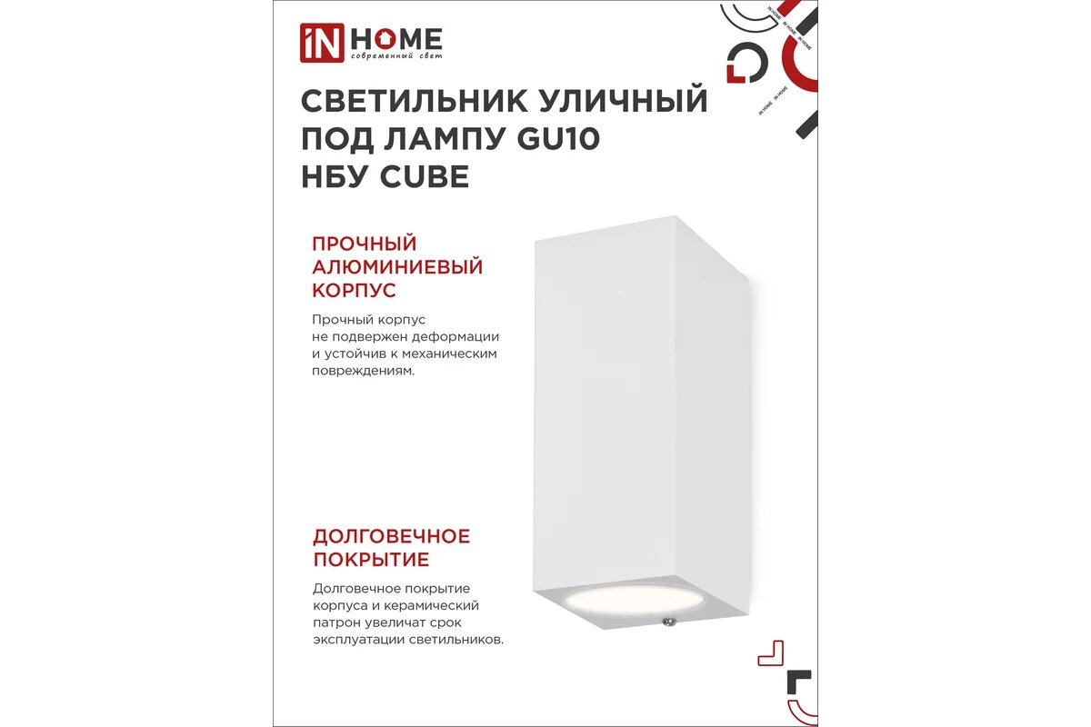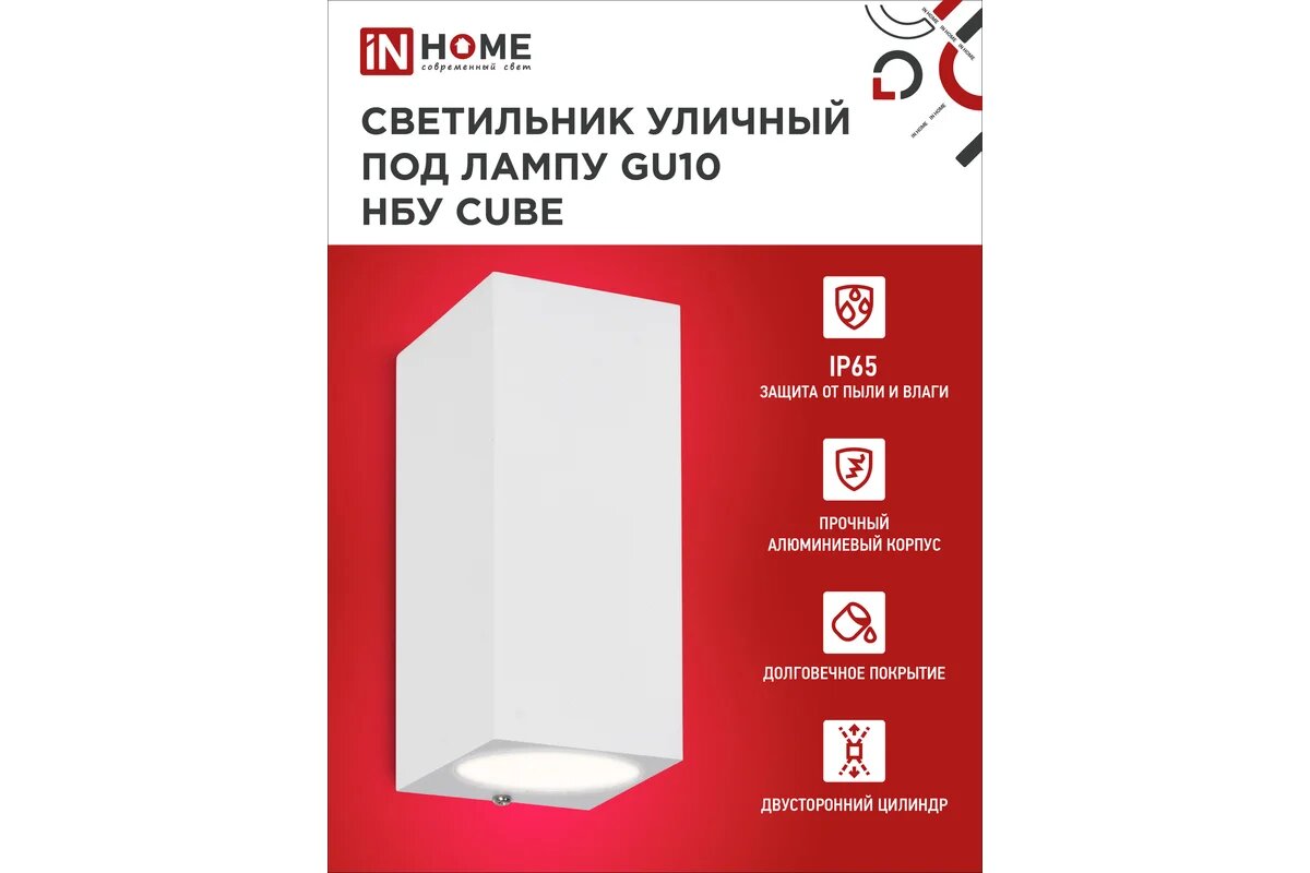 Светильник уличный односторонний НБУ CUBE-1хGU10-WH алюминиевый под лампу 1хGU10 IP65 бел. IN HOME 4690612044736
