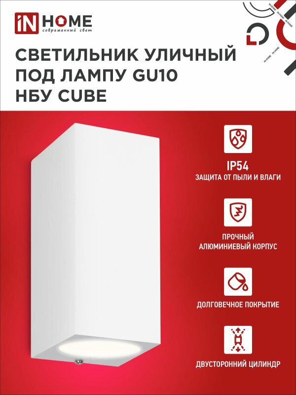 Ниже Вы можете прочитать отзывы на Светильник уличный двусторонний НБУ CUBE-2хGU10-WH алюм под 2хGU10 230B белый IP65 IN HOME, ознакомится с подробными характеристиками, посмотреть интересные обзоры и фотографии на Светильник уличный двусторонний НБУ CUBE-2хGU10-WH алюм под 2хGU10 230B белый IP65 IN HOME.