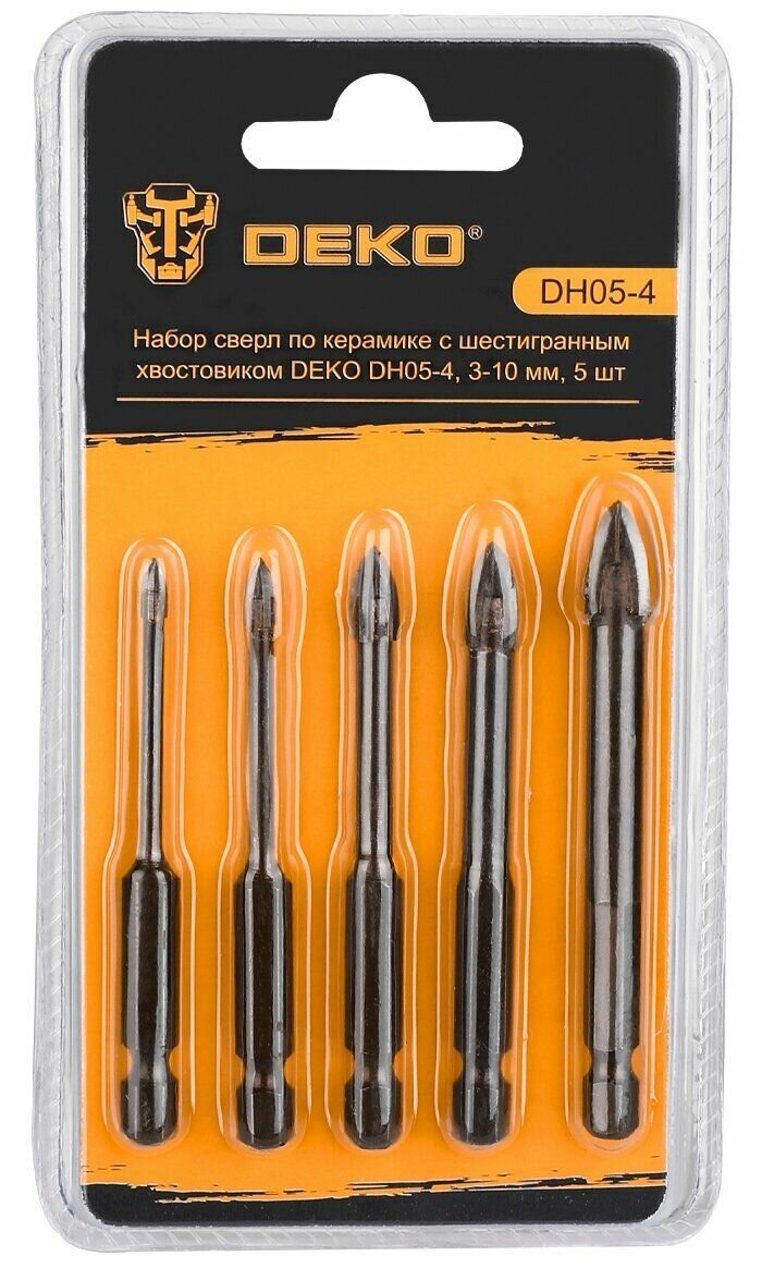 Набор сверл по керамике с шестигранным хвостовиком DEKO DH05-4 , 3-10 мм, 5 шт