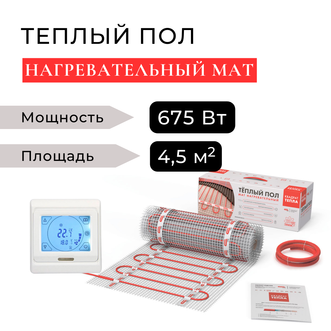 Теплый пол электрический под плитку. Нагревательный мат 4.5 м2 с сенсорным терморегулятором интересное: