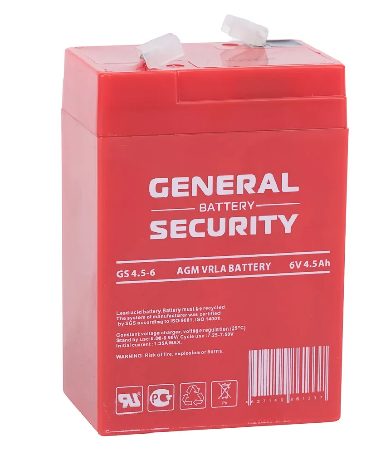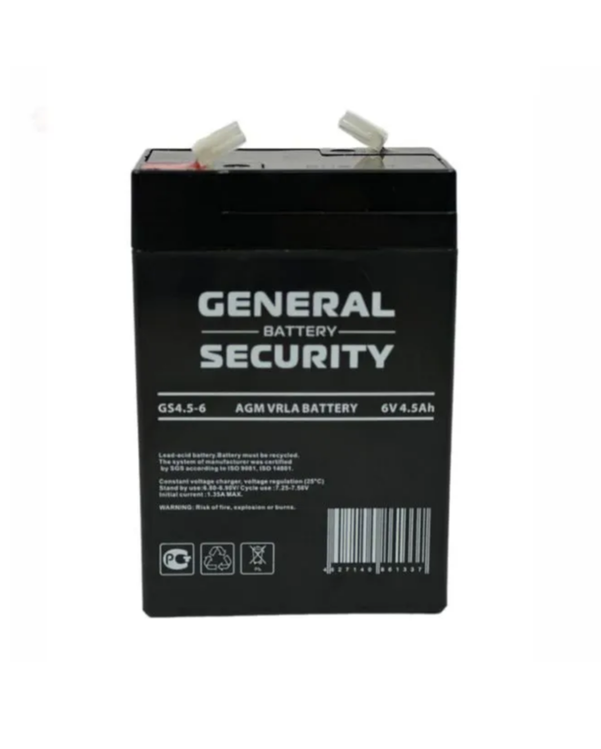 Аккумулятор General Security GS 4.5-6 (6V/4.5Ah) для электромобиля, ИБП, аварийного освещения, кассового терминала, GPS, скутера, контрольной панели