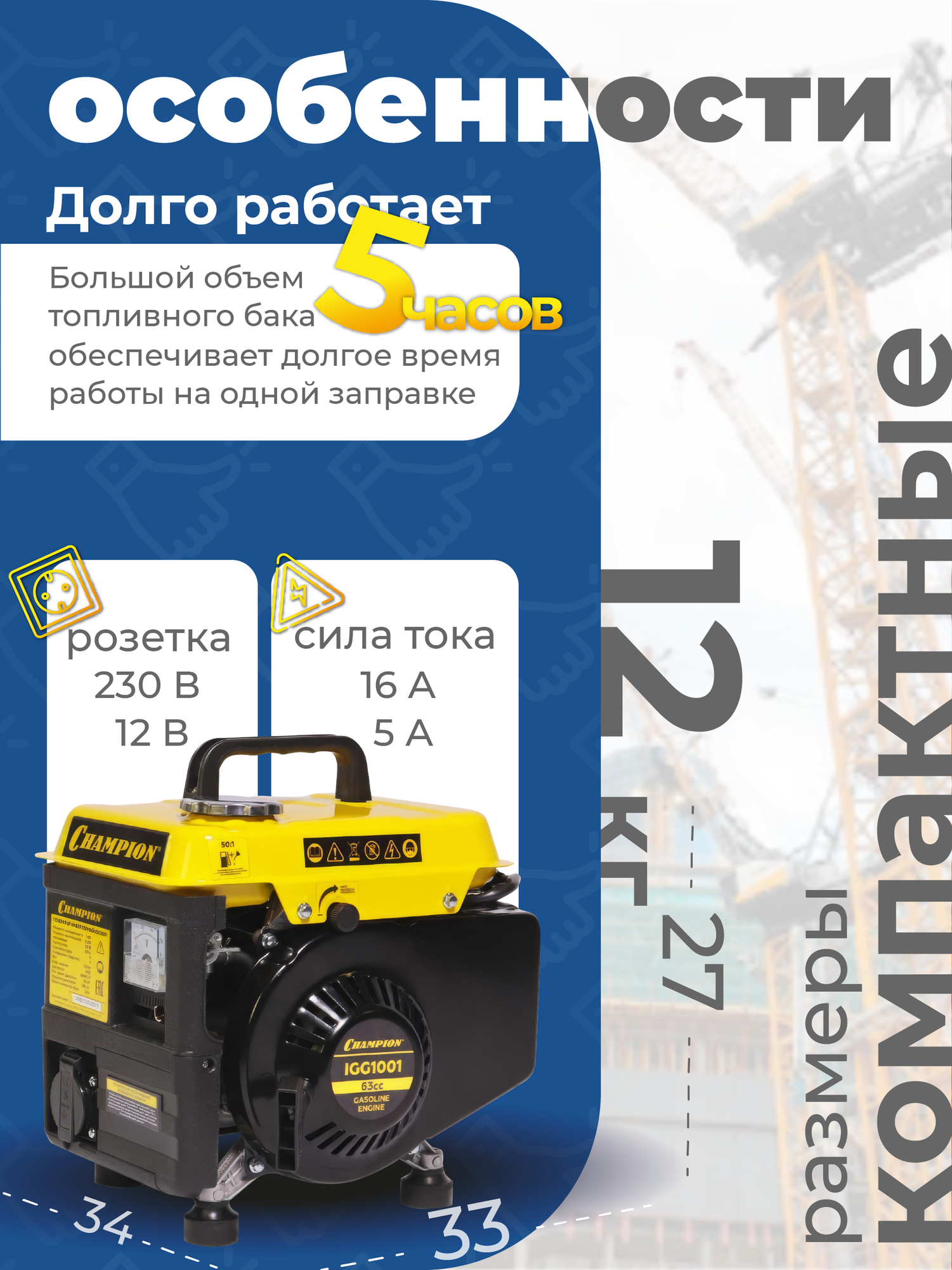 СохранитьГенератор бензиновый Champion IGG1001 интересное:
