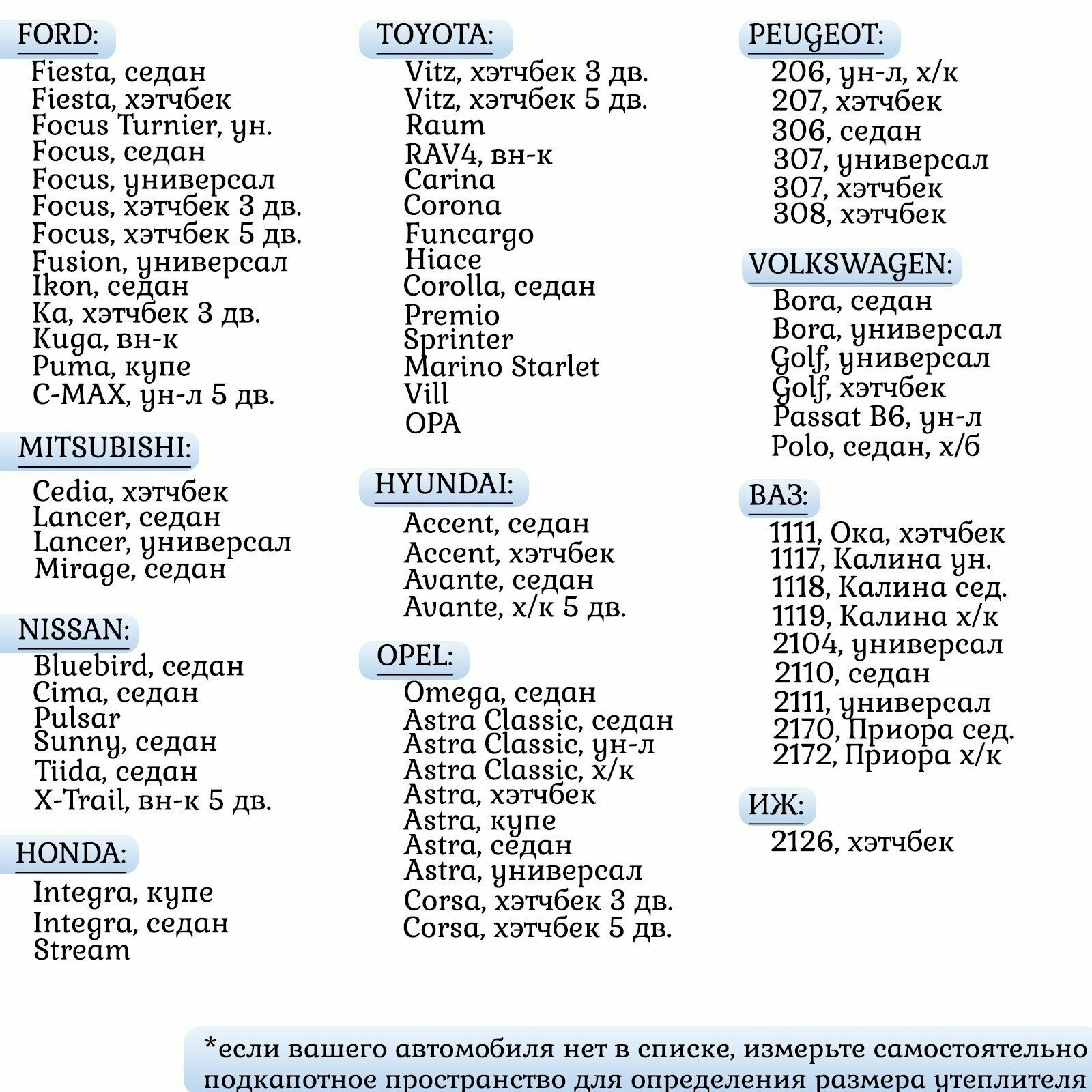 - Утеплители для двигателя, радиатора и аккумулятора