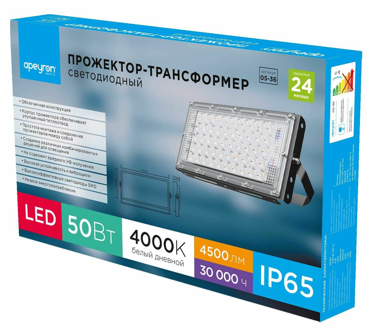 Прожектор-трансформер светодиодный уличный SMD 50 Вт IP65 цвет чёрный интересное: