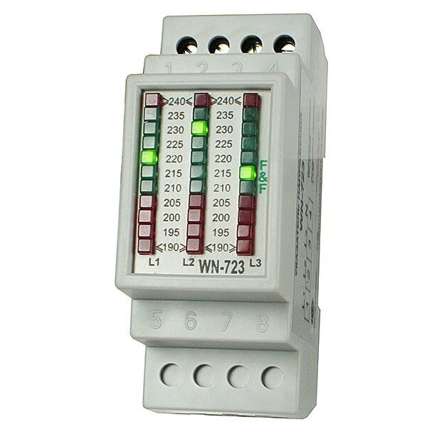Купить Указатель напряжения WN-723. Трехфазный. Светодиодная шкала. Диапазон индикации 190-240В. Монтаж на DIN-рейке 35 мм.