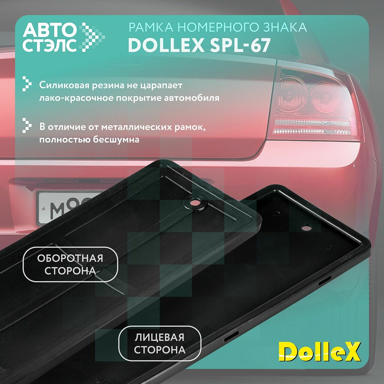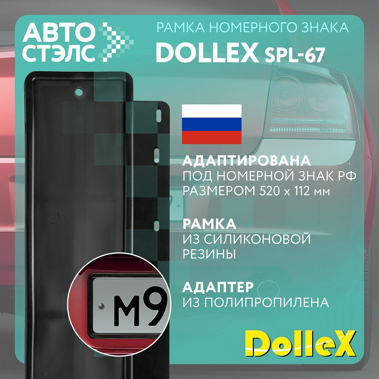 DolleX Рамка номерного знака силиконовая с адаптером, черная SPL-67