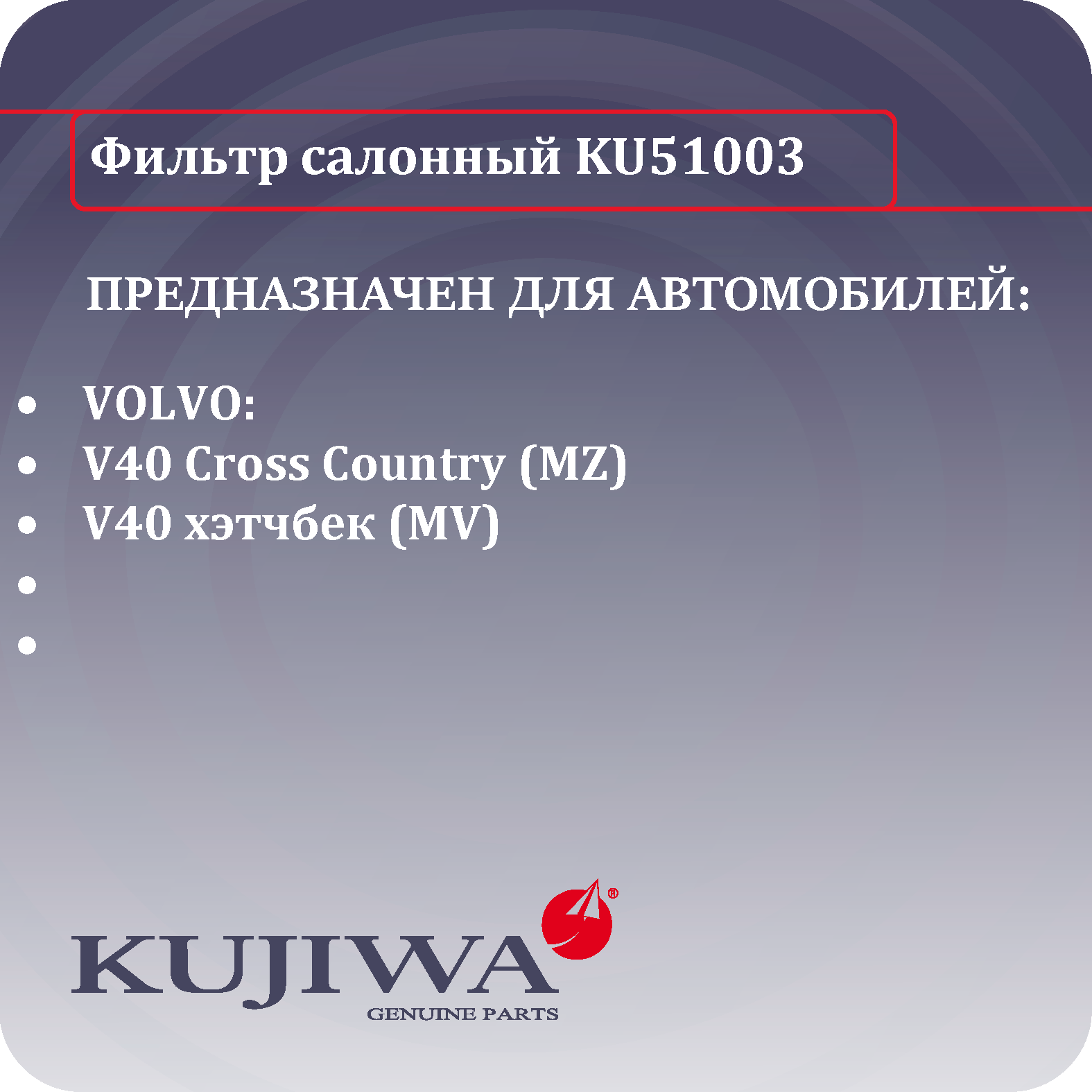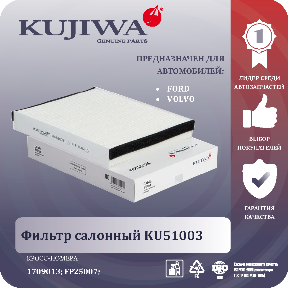 Фильтр салонный KU51003 KUJIWA Ford C-Max 10- Focus III 11- Kuga II 13- Volvo V40 12- интересное: