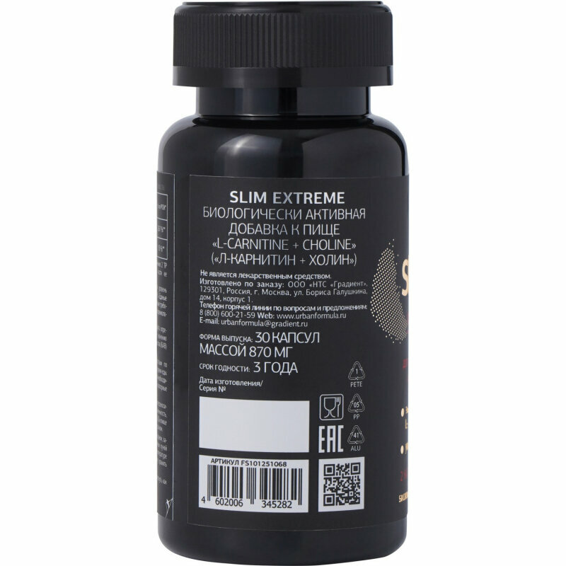 Urban Formula Slim Extreme/ Биологически активная добавка к пище «L-CARNITINE CHOLINE» («л-карнитин холин») интересное:
