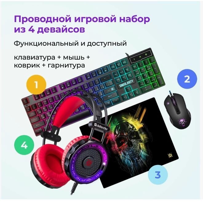 Гарнитура +KEYBOARD +MOUSE PAD +MOUSE MKP-118 52118 DEFENDER интересное: