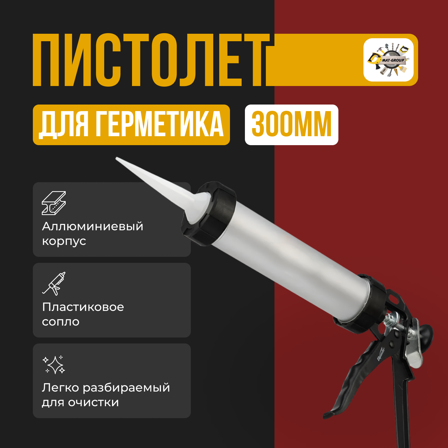 | Дополнительная информация | Пистолет для герметика Туба,300мл/ Механический, 300 мл |