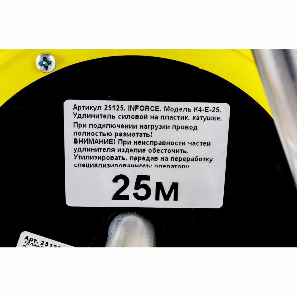 Силовой удлинитель на катушке Inforce К4-Е-25 ПВС 3x1.5 25м 4 розетки 25125