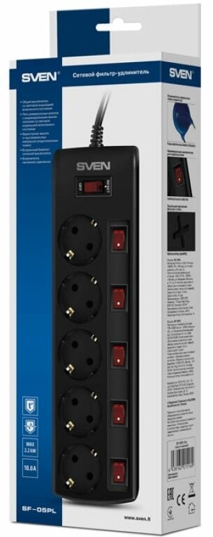 Ниже Вы можете прочитать отзывы на Сетевой фильтр Sven SF-05PL 1,8 м (5 розеток) черный, ознакомится с подробными характеристиками, посмотреть интересные обзоры и фотографии на Сетевой фильтр Sven SF-05PL 1,8 м (5 розеток) черный.