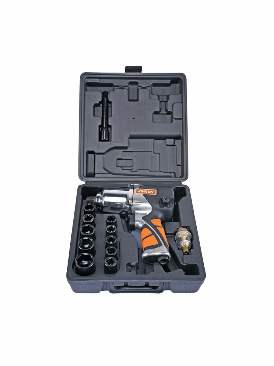 Гайковерт пневматический с набором ударных головок Кратон AIW-03S