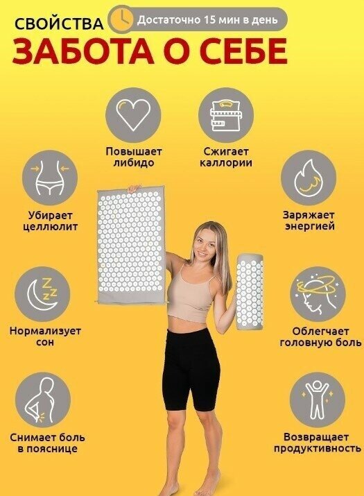 СохранитьАппликатор Кузнецова/массажный акупунктурный коврик с валиком для спины и шеи/ортопедическая подушка для спины, шеи и ног/серый интересное: