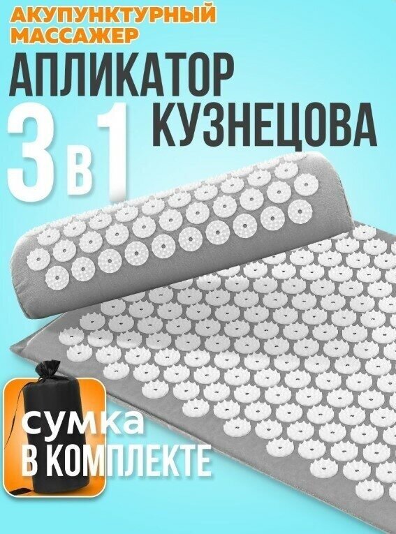 Купить Аппликатор Кузнецова/массажный акупунктурный коврик с валиком для спины и шеи/ортопедическая подушка для спины, шеи и ног/серый