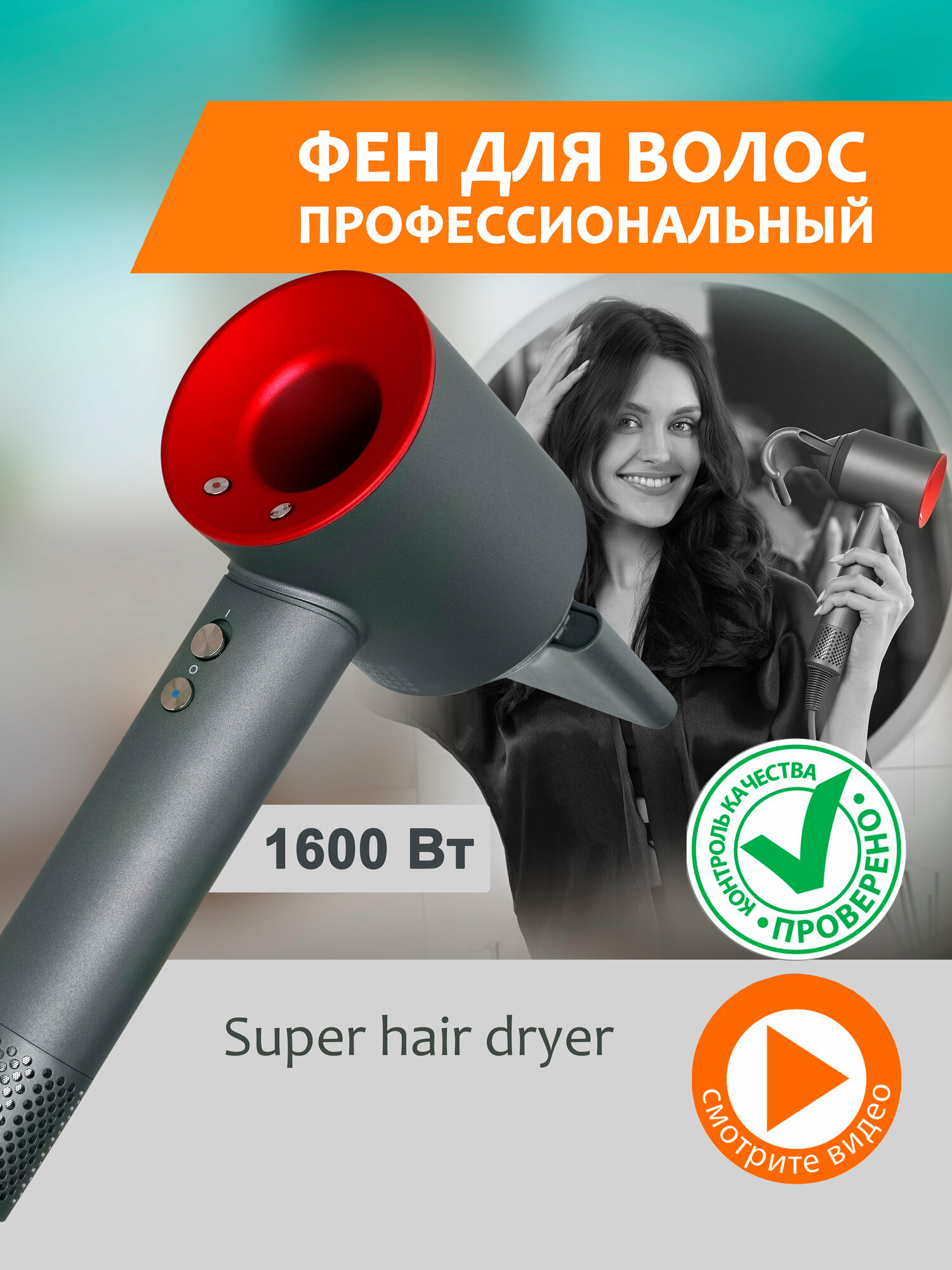 Фен для волос профессиональный с насадками RED интересное: