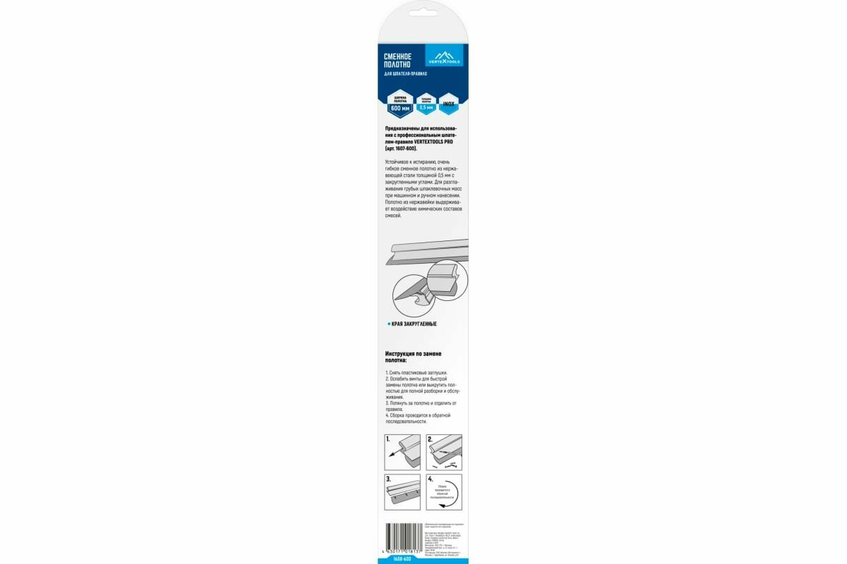 Сменное полотно (лезвие) для шпателя-правило VertexTools 600 мм. нержавеющая сталь 0,5 мм. интересное: