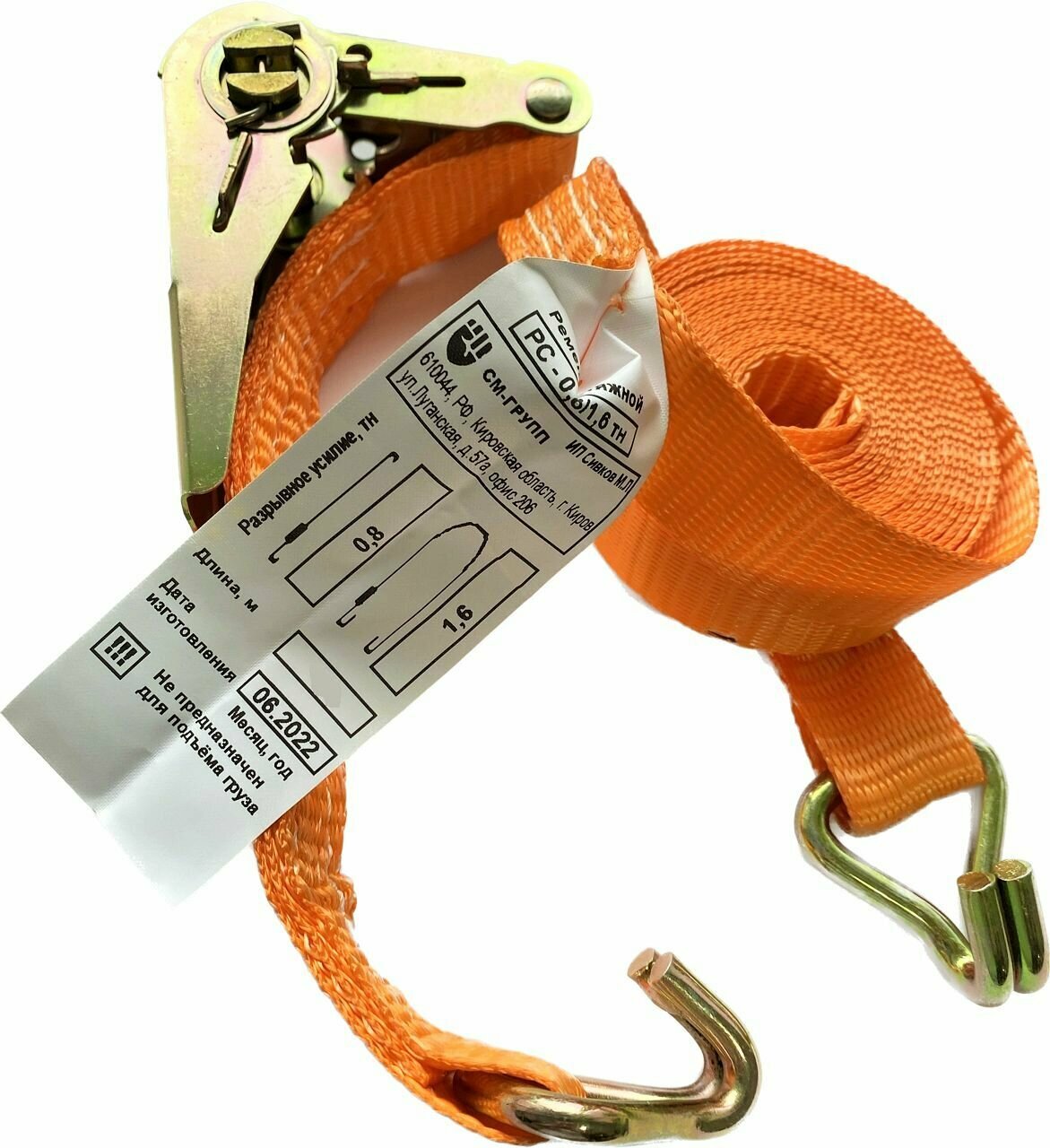 Ремень стяжной 25мм 0,8т/1,6т/ 2 метра, с храповым механизмом и крюками