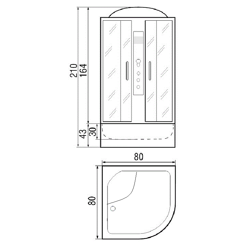 Душевая кабина River NARA 80/43 Б/К MT 80*80*190, полукруг, без крыши
