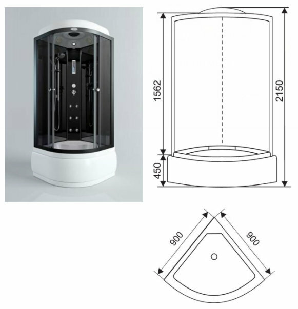 Душевая кабина Arcus AS-104 90x90 профиль Черный стекла Серые тонированные