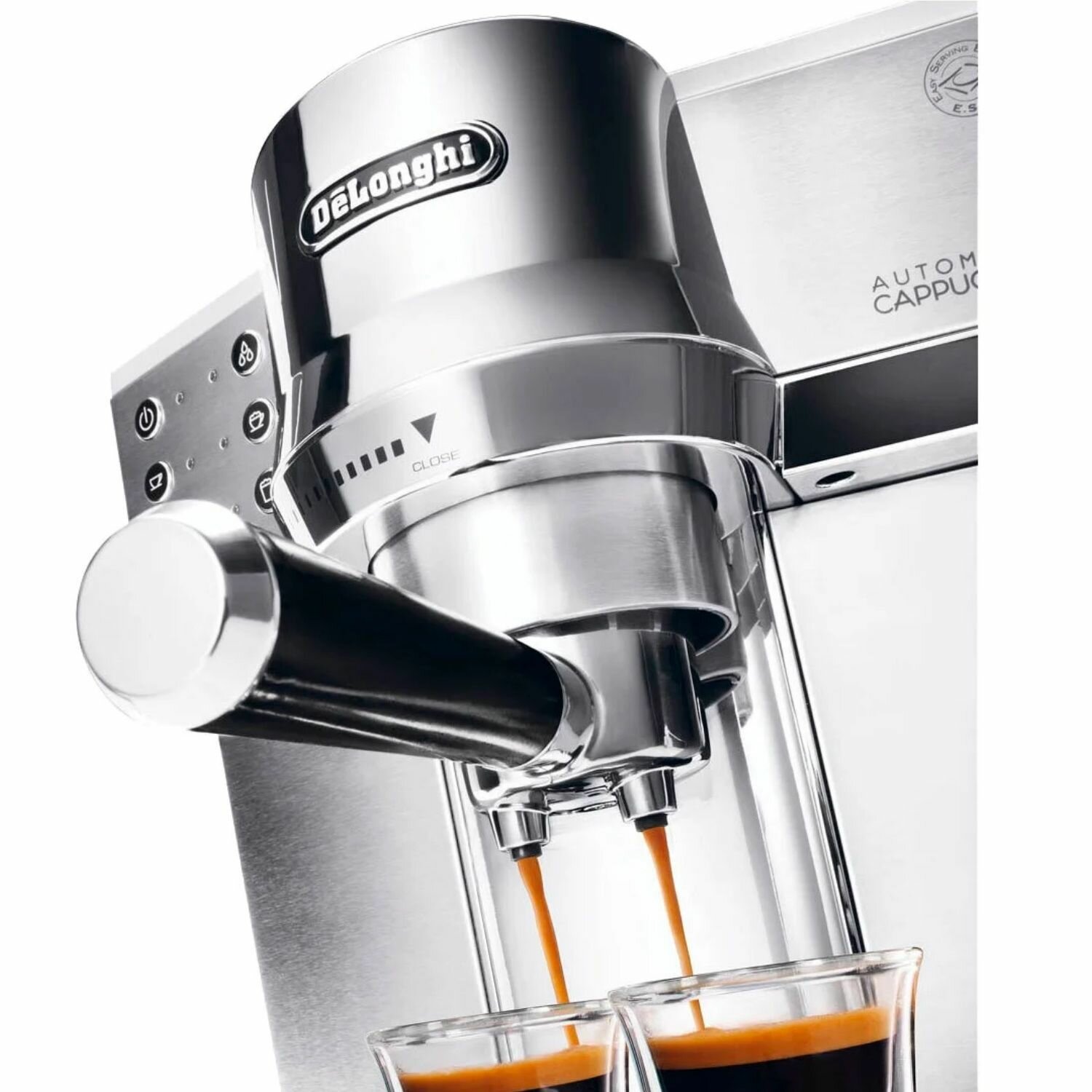 | Плюсы: | Быстро нагревается <br>Тихая <br>Два независимых нагревательный элемента <br>Хороший капучинатор, готовить действительно пенку (которая еще долго стоит) <br>Легко моется <br>Кофе эспрессо выходит отличный, с золотистой легкой пенкой (на мелком «3 деление» помоле при помощи Delonghi KG 79). Латте тоже вкусное, но нужно под свои чашки программировать <br>Программируемая температура воды. Средняя – обжигающая, высокая – кипяток <br>Программируемое кол-во кофе под Вашу чашку <br>Корпус весь из металла (нержавейки) <br>Запоминаемые настройки в случае отключение от сети (энергонезависимая память) <br>Отдельная кнопк вкд/выкл. |
