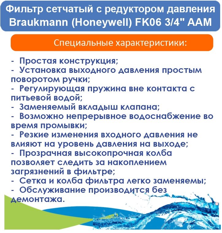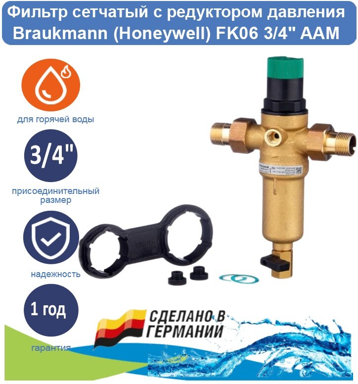 Фильтр для воды Honeywell-Braukmann FK06-3/4 AAM горячей воды с редуктором