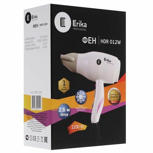 Фен ERIKA ER HDR 012W 2200W белый интересное: