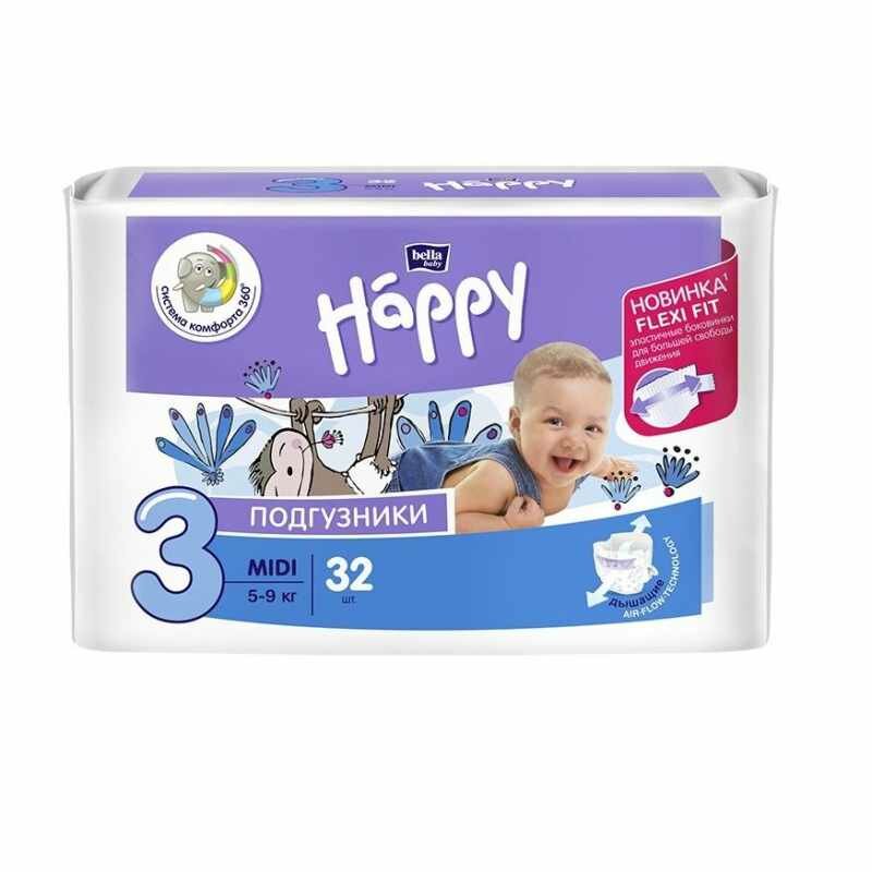 Подгузники "Happy Midi" (5-9 кг) 32 шт.