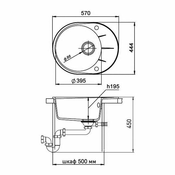 Мойка кухонная овальная Ewigstein Rund (R-45F антрацит)