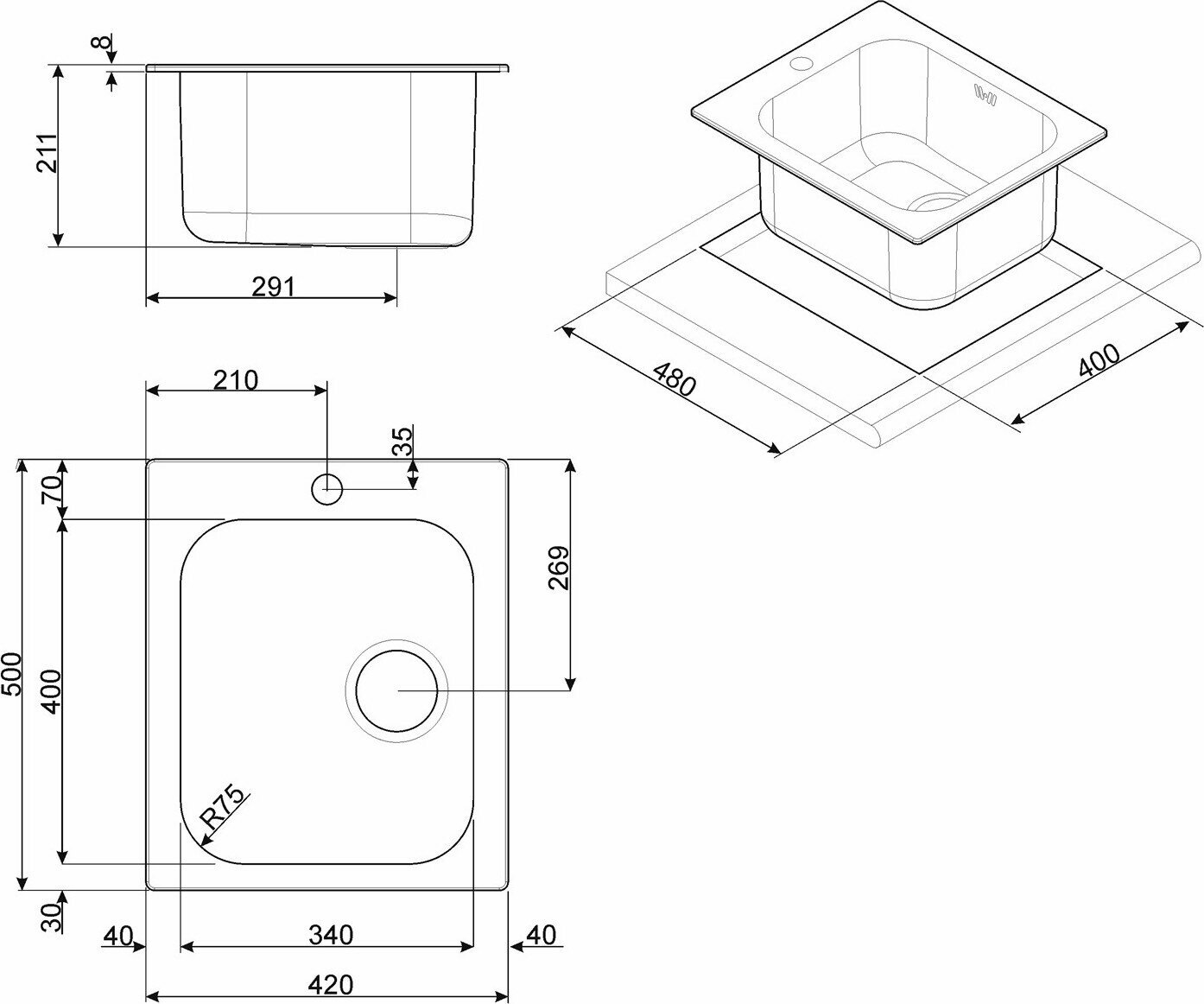 | Установка | врезная |