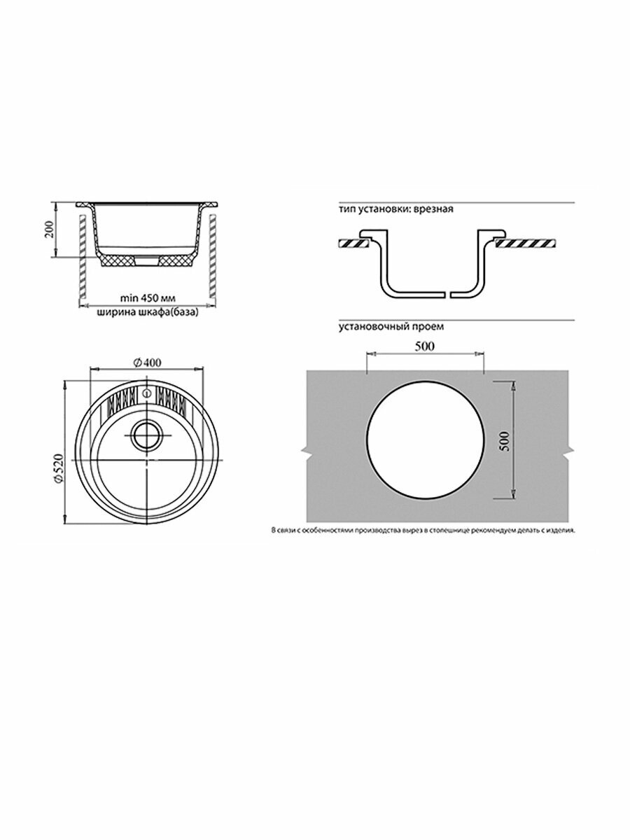 СохранитьКухонная мраморная мойка GranFest RONDO GF-R520 (GF-52), круглая, врезная, D-520мм, с переливом, цвет белый/Раковина для кухни интересное: