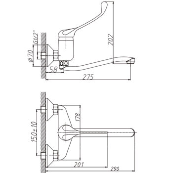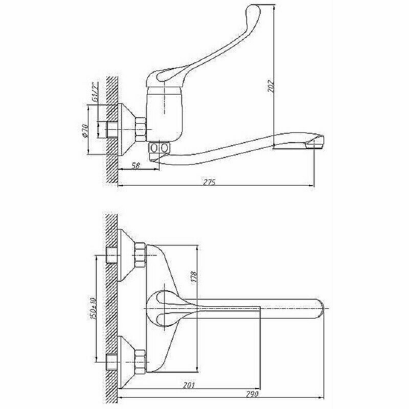 Смеситель настенный 40к HB4654 HAIBA медицинский S-нос