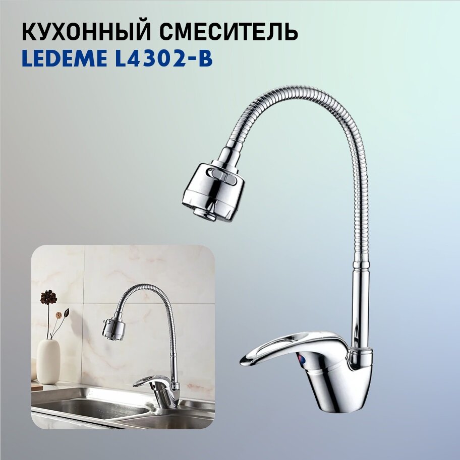 Смеситель Ledeme L4302-B для мойки, хром