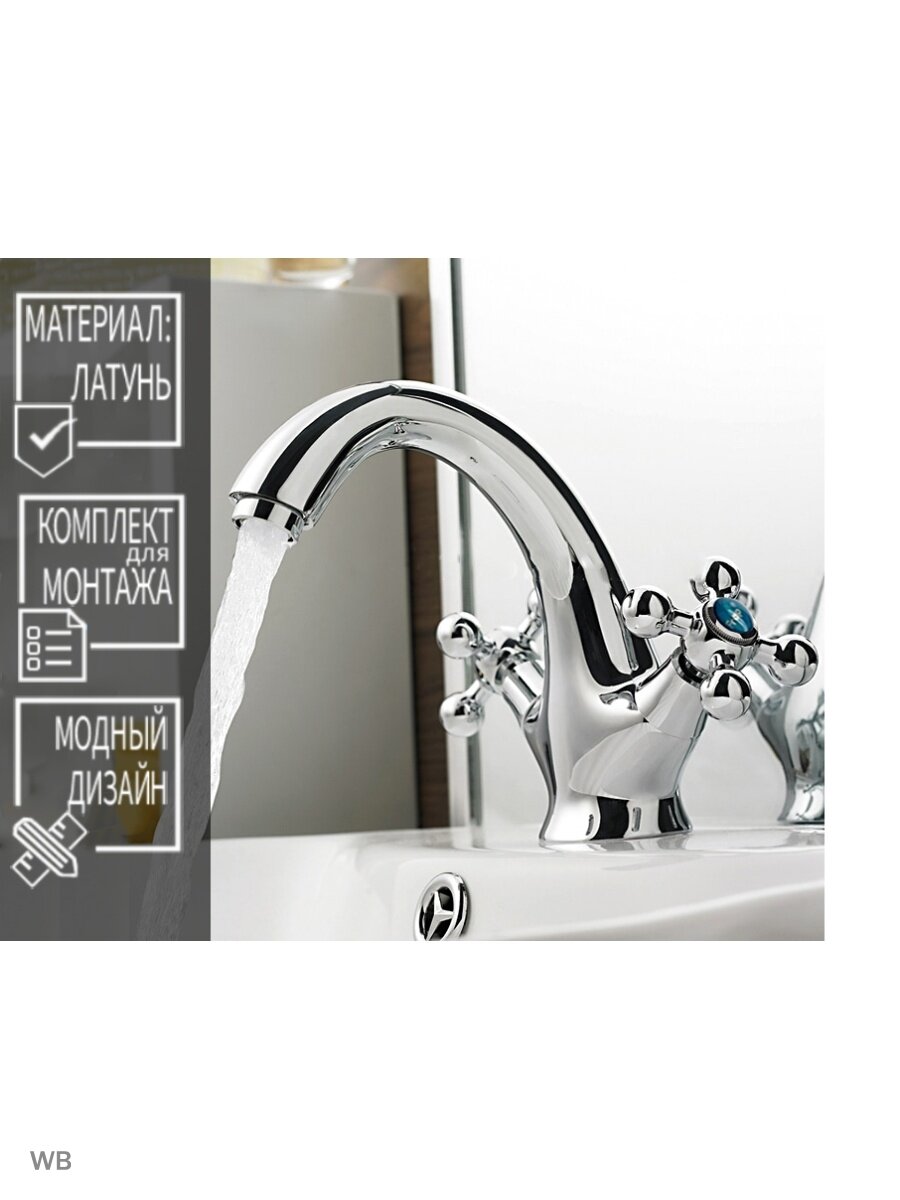 F1019 Смеситель для раковины, 2-х ручковый, латунь, хром