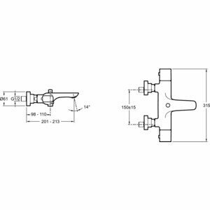 Смеситель Jacob Delafon ALEO для ванны/душа, термостат, настенный, экономичный картридж С3 E72286-CP