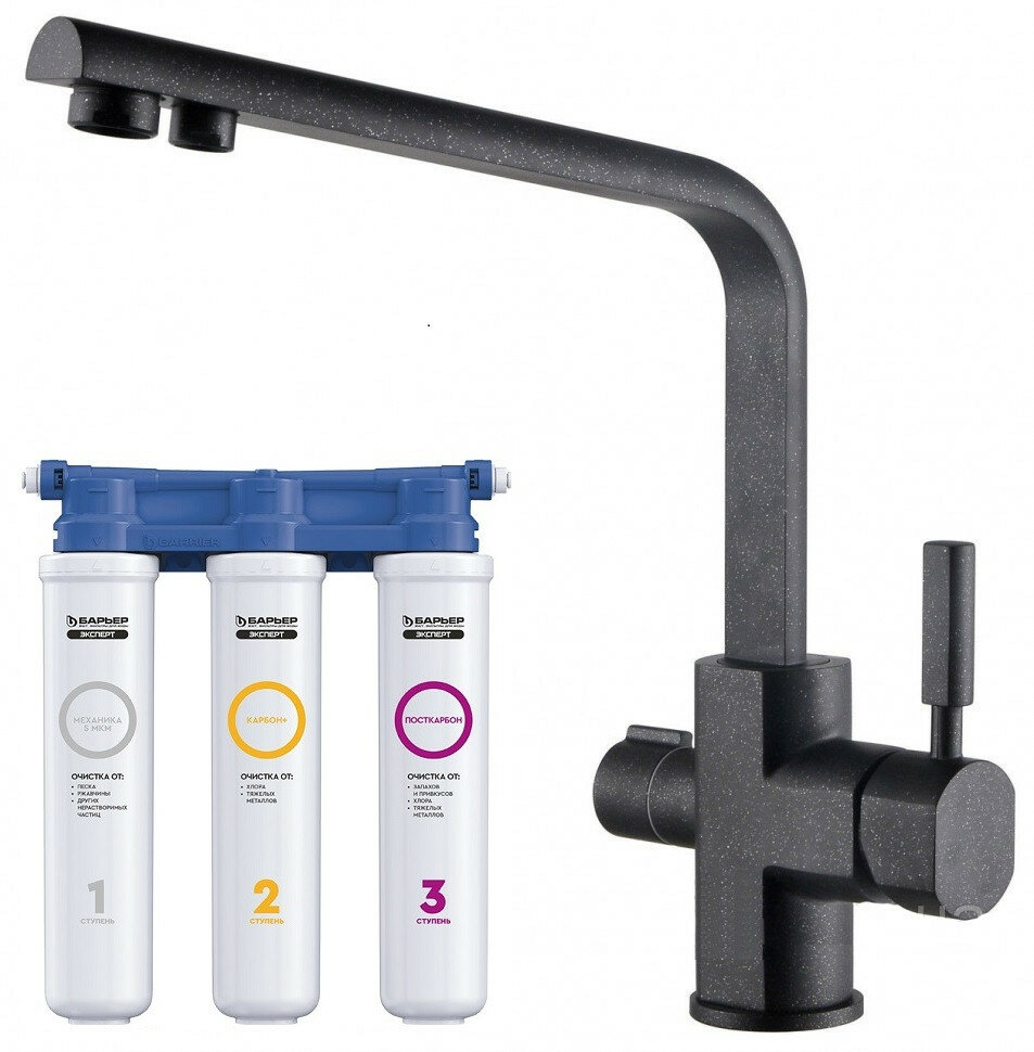 Смеситель кран для кухни и кухонной мойки с фильтром для питьевой воды Kaiser Decor черный матовый 40144-9