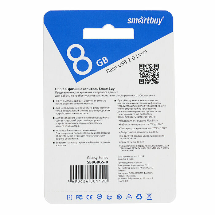 СохранитьUSB Flash Drive Smartbuy Glossy series USB 2.0 8GB Синий (SB8GBGS-B) интересное: