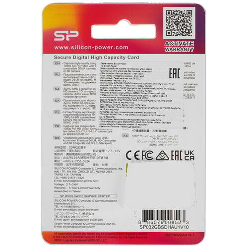 Карта памяти 32Gb SD Silicon Power (SP032GBSDHAU1V10)