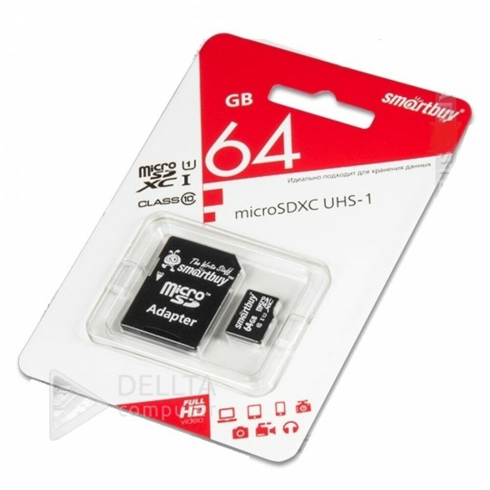 Купить Карта памяти SmartBuy microSDXC 64 ГБ Class 10, UHS-I U1, R 80 МБ/с, адаптер на SD