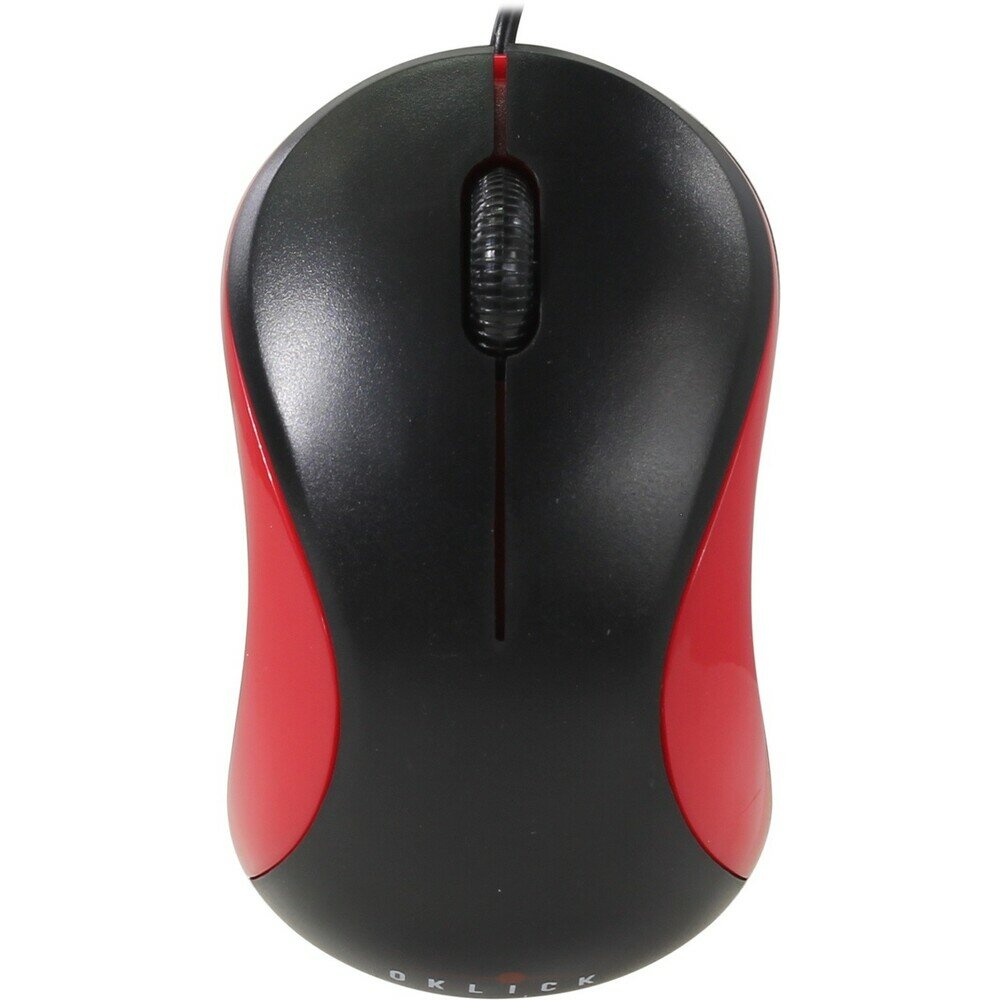 Мышь Oklick 115S, оптическая, проводная, USB, черный и красный [711637]
