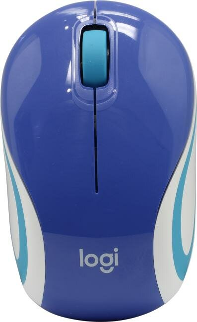 Мышь Logitech M187, оптическая, беспроводная, USB, голубой и белый [910-002733]