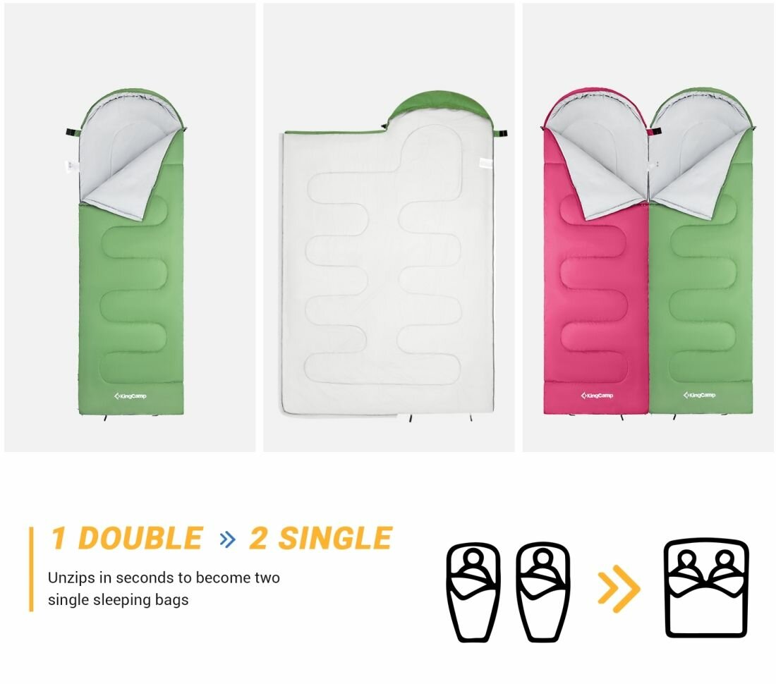 Спальник Kingcamp 3121 Oasis 250 -3С 190+30X75 зеленый