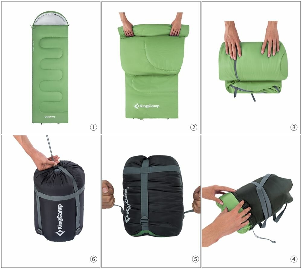 Спальник Kingcamp 3121 Oasis 250 -3С 190+30x75, зеленый, молния с правой стороны