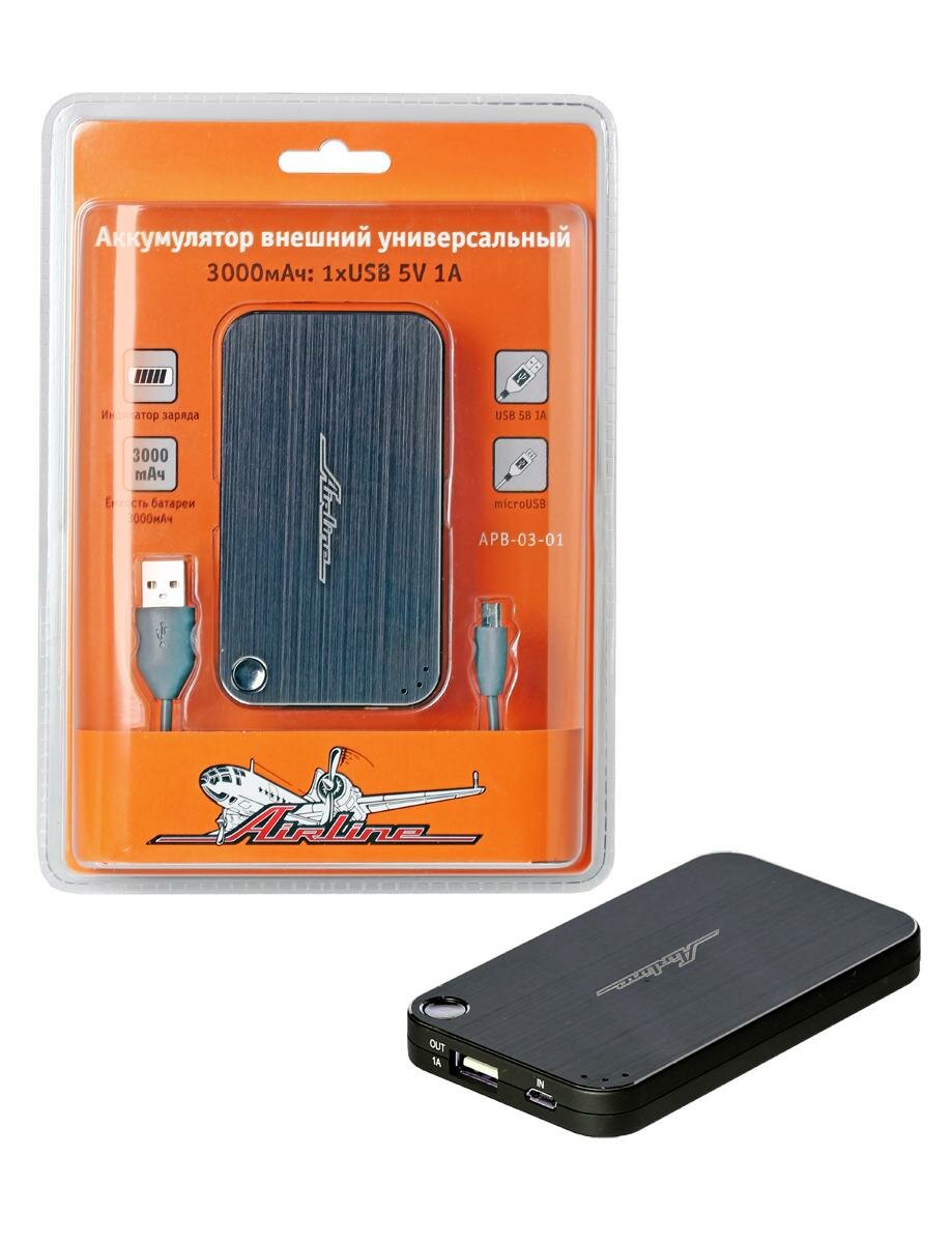 AIRLINE APB0301 аккумулятор внешний универсальный 3000МАЧ 1ХUSB 5V 1A (APB-03-01) 1шт