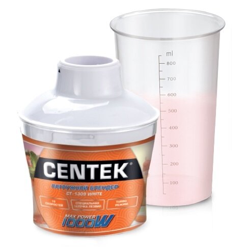 Блендер Centek CT-1309 White, 1000Вт, регулятор скор, стакан, чоппер, венчик, белый